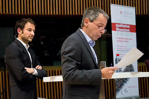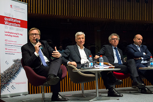 Le 10 novembre 2016 s’est tenu au « European Convention Center » à Luxembourg, sur invitation du ministre du Développement durable et des Infrastructures, François Bausch, une table ronde politique sur le thème de «Wéi e qualitative Wuesstem fir eist Land? - Landesplanung fir eng nohalteg Zukunft».