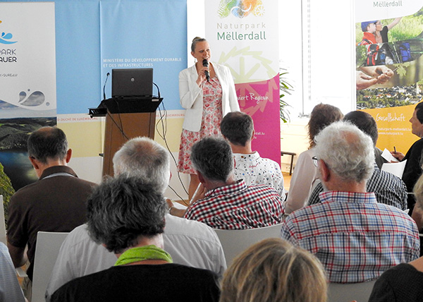 Von Liette Mathieu, Ministerium für nachhaltige Entwicklung und Infrastrukturen, Abteilung Landesplanung, wurden die sich in Ausarbeitung befindlichen künftigen Kriterien für regionale Produkte vorgestellt. Eine Kooperation zwischen den drei Naturparks Öewersauer, Our und Mëllerdall und den Naturschutzsyndikaten im Bereich der regionalen Produktherstellung bietet den Vorteil, mehr Produzenten und Abnehmer anzusprechen. Zudem hat ein gemeinsames Label mit einheitlichen Kriterien größere Chancen sich auf dem Markt und bei den Kunden durchzusetzen.