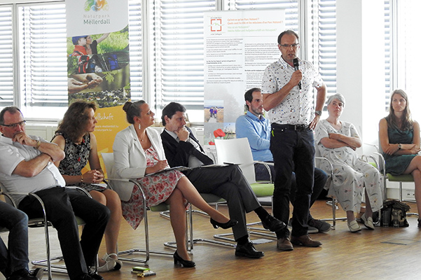 Am 22. Juni 2017 lud Umweltministerin Carole Dieschbourg zu einem Kolloquium über regionale Produkte aus den Luxemburger Naturparks und den Naturschutzsyndikaten im Ministerium für nachhaltige Entwicklung und Infrastrukturen ein. Rund 60 Besucher aus den staatlichen Ministerien und Verwaltungen, den Naturparks, der Gemeinde-Syndikate sowie verschiedene Naturparkproduzenten waren der Einladung gefolgt. Ziel der Veranstaltung war es, die Besucher über den aktuellen Stand der Arbeiten im Bereich der Kriterien Aufstellung für regionale Produkte aus Naturparks und Naturschutzsyndikaten zu informieren. Das Motto der Veranstaltung lautete: